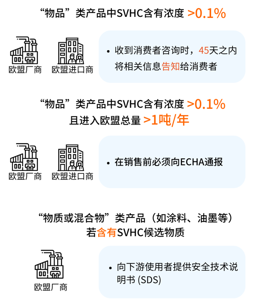 “物質(zhì)或混合物”類產(chǎn)品(如涂料、油墨等)若含有SVHC候選物質(zhì),則生產(chǎn)廠商應(yīng)向下游使用者提供安全技術(shù)說明書(SDS),其中混合物還需在SDS1.1節(jié)中填寫UFI(唯一配方標(biāo)識符)。