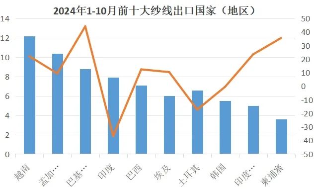 1-10月對東盟出口紗線面料出口持續(xù)增長
