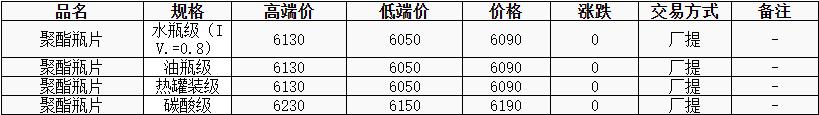 華東聚酯瓶片價格穩(wěn)至6090元/噸,原料漲跌互現(xiàn),聚酯瓶片工廠報價多穩(wěn),重心僵持整理。12月貨源報盤期貨合約03貼水20或6050-6130,下游遞盤6070,暫無實單成交。