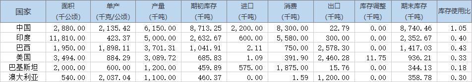 以下為全球棉花供需情況預估: