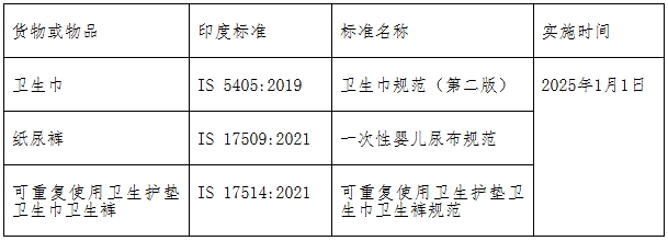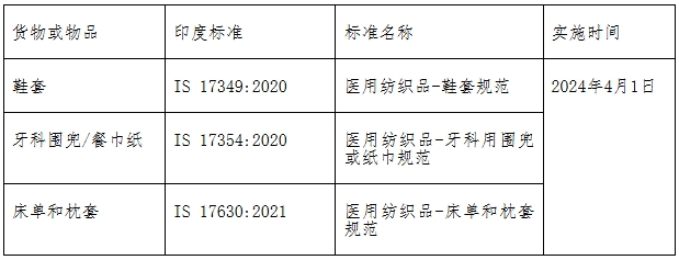 2024年10月23日,印度紡織部根據(jù)2016年印度標(biāo)準(zhǔn)局法案發(fā)布最新醫(yī)用紡織品質(zhì)量控制令。該法令在官方公報(bào)上公布后生效,規(guī)定各種醫(yī)用紡織品的嚴(yán)格質(zhì)量標(biāo)準(zhǔn),包括衛(wèi)生巾、嬰兒尿布、醫(yī)用床上用品等產(chǎn)品。