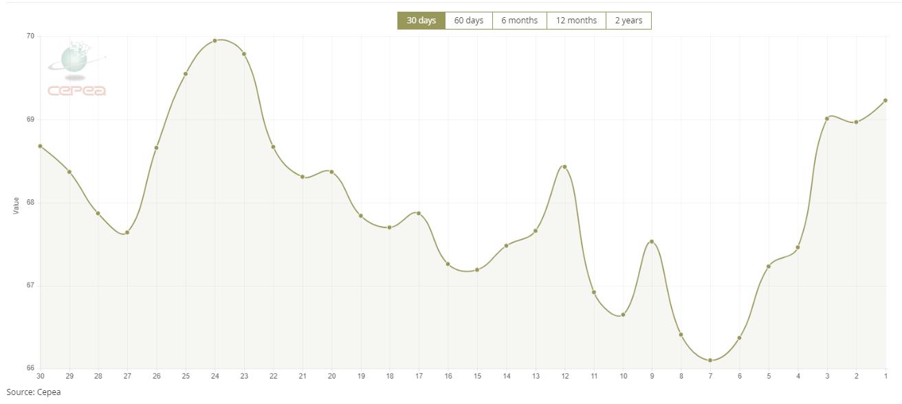 以下為近30日走勢(shì)圖:(單位:美分/磅)