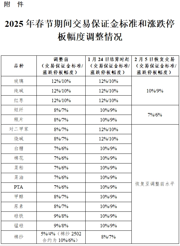 附件:2025年春節(jié)期間交易保證金標(biāo)準(zhǔn)和漲跌停板幅度調(diào)整情況