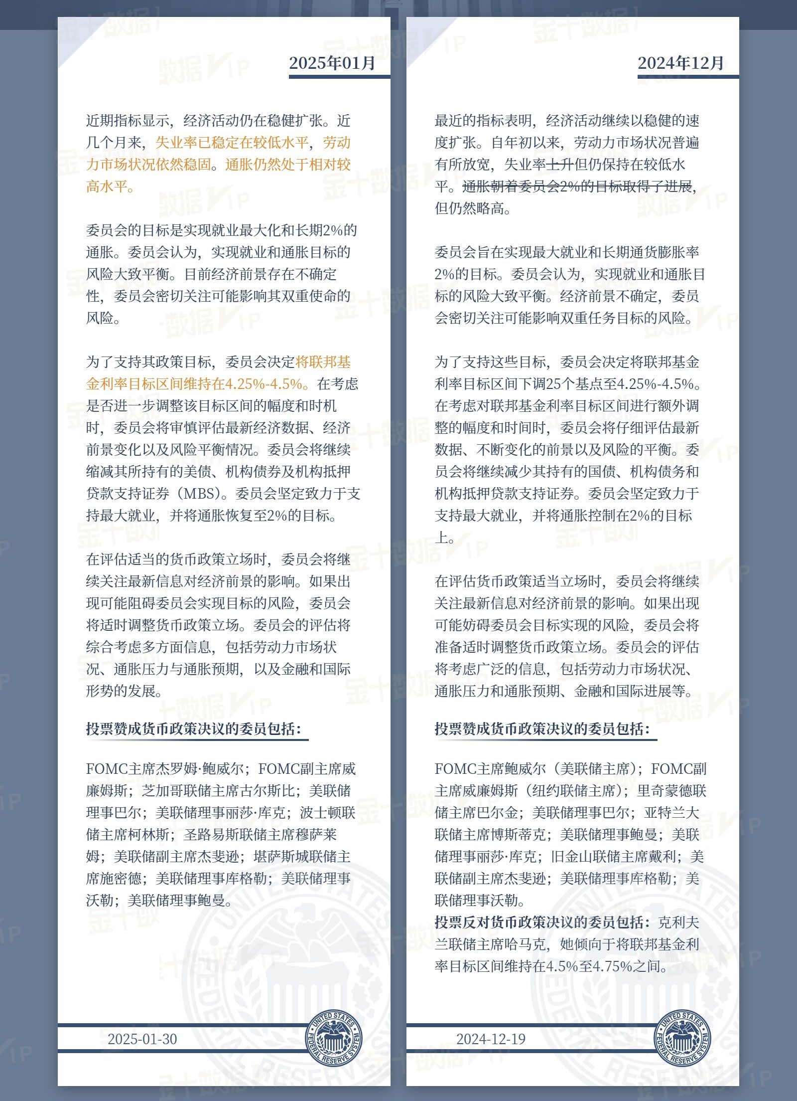 美國(guó)聯(lián)邦儲(chǔ)備委員會(huì)29日結(jié)束為期2天的貨幣政策會(huì)議,宣布將聯(lián)邦基金利率目標(biāo)區(qū)間維持在4.25-4.50%之間。