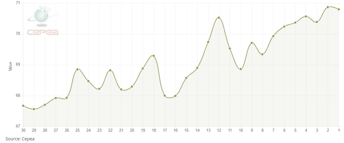 以下為近30日走勢圖:(單位:美分/磅)