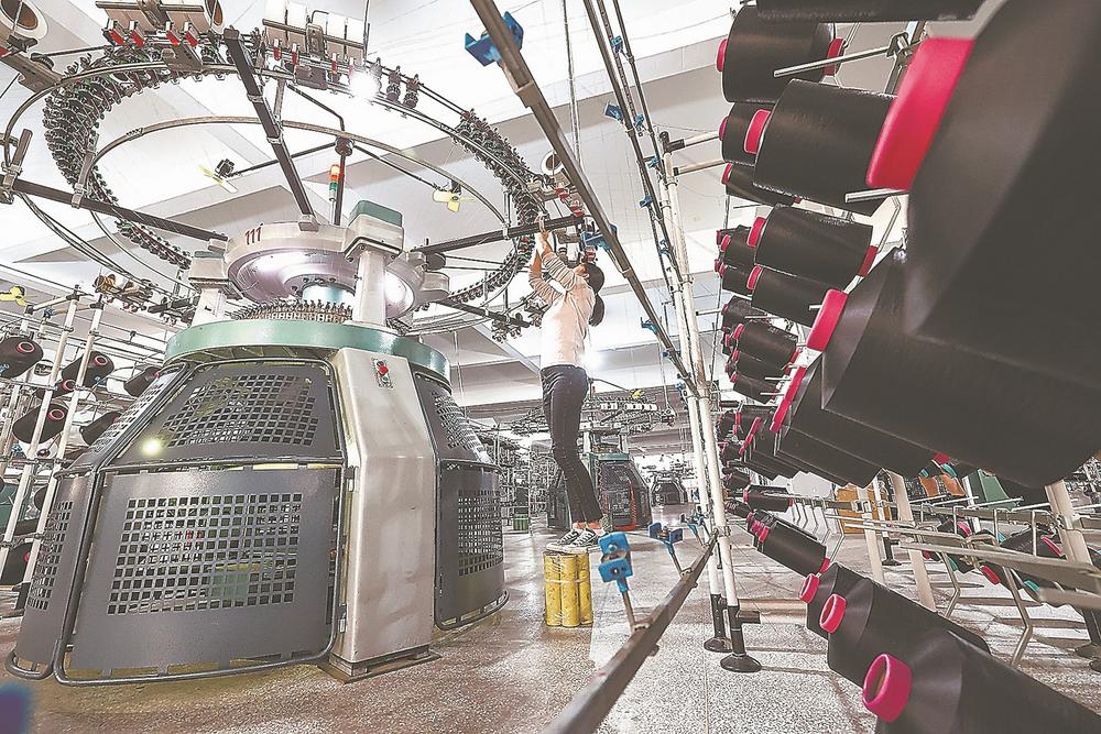 近日,石獅新遠(yuǎn)輝化纖紡織科技有限公司車間生產(chǎn)線上,近200臺(tái)針織大圓機(jī)24小時(shí)作業(yè),工人忙著生產(chǎn)發(fā)往歐美市場的訂單,全力沖刺“開門紅”。