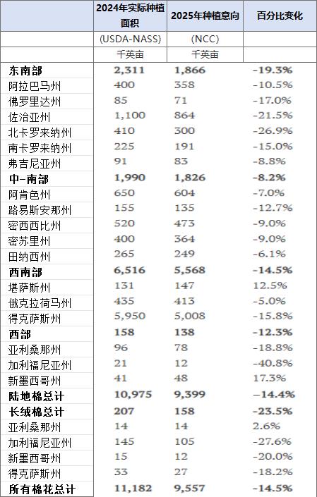 以下為2025年美國(guó)棉花種植意向: