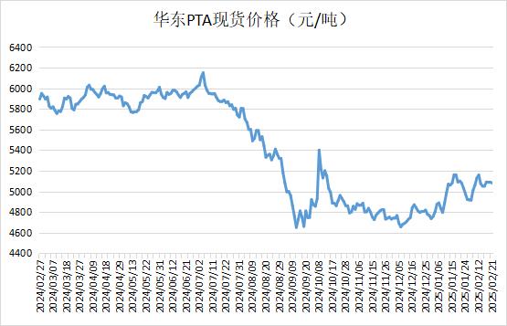 華東PTA現(xiàn)貨價格重心下滑,商談參考5000元/噸附近。本周及下周主港交割報盤在05貼水65,遞盤在05貼水70;3月主港商談在05貼水30-45。產(chǎn)業(yè)內(nèi)缺乏驅(qū)動,下游采購積極性不高,早盤市場買氣略顯謹(jǐn)慎,實(shí)單商談偏少。