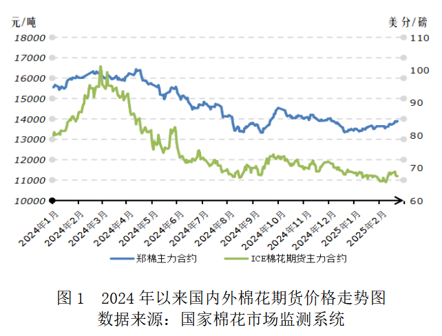 2月,美國關(guān)稅舉措相繼宣布,國內(nèi)棉市外部風(fēng)險(xiǎn)階段性明晰。俄烏沖突初現(xiàn)緩和,美元指數(shù)重心回落,國際棉花出口顯著改善,對外盤價(jià)格底部形成支撐。國內(nèi)宏觀環(huán)境積極,提振企業(yè)發(fā)展信心。紡織傳統(tǒng)旺季將至,為市場構(gòu)筑良好預(yù)期,對國內(nèi)棉價(jià)形成向上牽引。本期月報(bào)將圍繞近期行情發(fā)展預(yù)測分析。