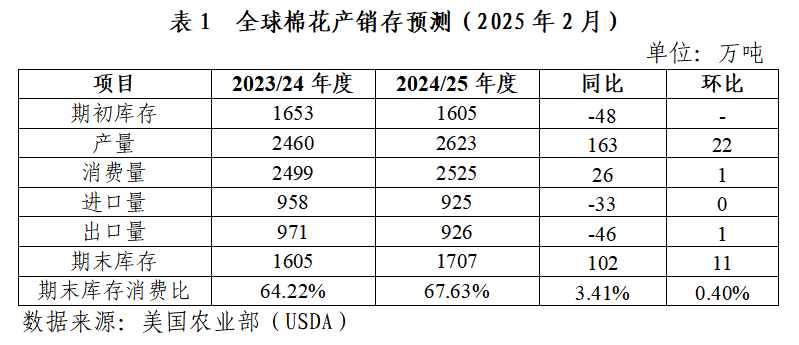 1.2024/25年度全球棉花產(chǎn)需格局進(jìn)一步寬松