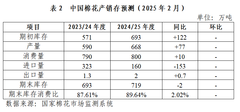 1.2024/25年度國內(nèi)棉花產(chǎn)需缺口收窄
