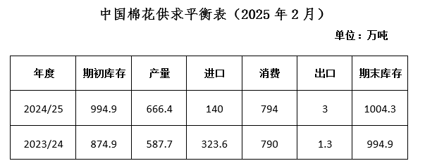 2025年1月,國內(nèi)宏觀氛圍持續(xù)轉(zhuǎn)暖,央行等部門釋放積極政策信號,經(jīng)濟預(yù)期向好,棉紡織廠對春節(jié)后市場信心有所恢復(fù),適當(dāng)采購原棉補充庫存,推動國內(nèi)棉價小幅上漲。國際棉價在供給持續(xù)寬松、需求不確定性增強等因素影響下震蕩下跌,內(nèi)外棉價差環(huán)比略有擴大。中國棉花協(xié)會預(yù)測:2024/25年度全國棉花產(chǎn)量666.4萬噸,同比增長13.4%;進口量140萬噸,同比下降56.7%;消費量794萬噸,同比略增0.5%。今年春節(jié)假期較早,2月新疆部分地區(qū)開始春耕備播,中國棉花協(xié)會預(yù)測2024/25年度全國棉花種植意向面積同比增長0.8%。