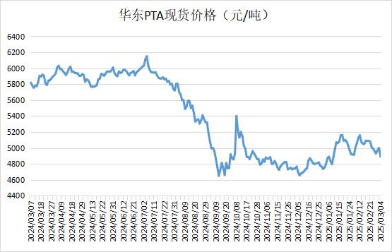 華東PTA現貨偏弱整理,商談參考4870元/噸附近。下周主港交割報盤在05貼水20元/噸,個單遞盤在05貼水30元/噸;3月下主港商談在05貼水20-30元/噸。國際油價持續(xù)走弱,市場缺乏利好驅動,早盤市場買盤略顯謹慎,實單商談稀少。