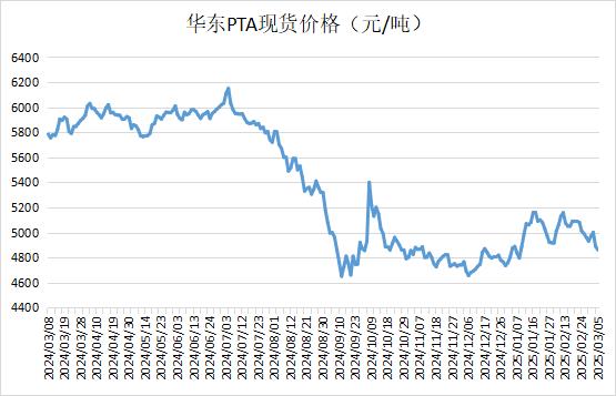華東PTA現(xiàn)貨偏弱整理,商談參考4790元/噸附近。本周主港交割報(bào)盤在05貼水25元/噸;下周主港交割報(bào)盤在05合約貼水20元/噸;3月下主港商談在05貼水15元/噸,實(shí)單遞盤稀少。國(guó)際油價(jià)持續(xù)走弱,市場(chǎng)缺乏利好驅(qū)動(dòng),早盤市場(chǎng)買盤稀少。
