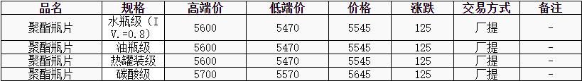 華東聚酯瓶片價格上漲125元至5545元/噸,宏觀消息提振市場,商品氛圍整體回暖。聚酯瓶片市場價格大幅上調(diào),4月貨源報盤5470-5600元/噸,局部略高5800元/噸,遞盤5470-5490元/噸