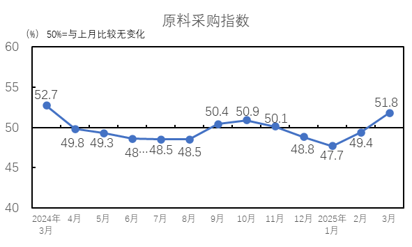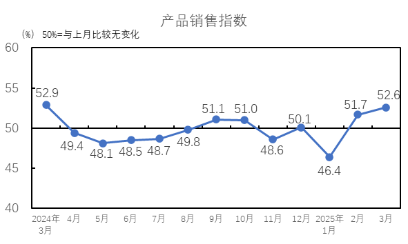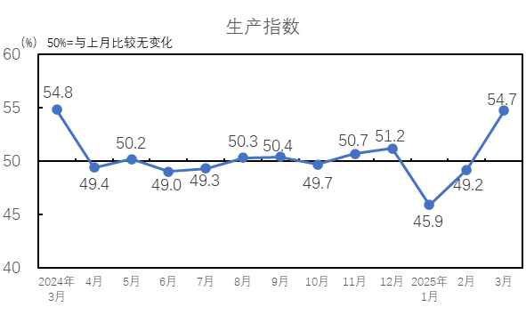 中國經(jīng)濟景氣水平繼續(xù)回升。國家統(tǒng)計局服務業(yè)調查中心和中國物流與采購聯(lián)合會發(fā)布的2025年3月中國制造業(yè)采購經(jīng)理指數(shù)為50.5%,較上月上升0.3個百分點,指數(shù)在擴張區(qū)間繼續(xù)上行,我國經(jīng)濟總體保持擴張。