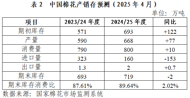 1.2024/25年度國內(nèi)棉花產(chǎn)需缺口收窄