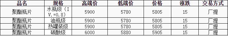華東聚酯瓶片價格上漲15元至5805元/噸,原油提振原料持續(xù)偏強,聚酯瓶片市場重心略有上揚。下游追漲乏力,拖累漲幅。5月貨源報盤5780-5900元/噸或期貨合約2507貼水20元/噸至升水60元/噸,遞盤5750元/噸或2507貼水50元/噸,業(yè)內(nèi)觀望情緒濃厚,等待新消息指引。