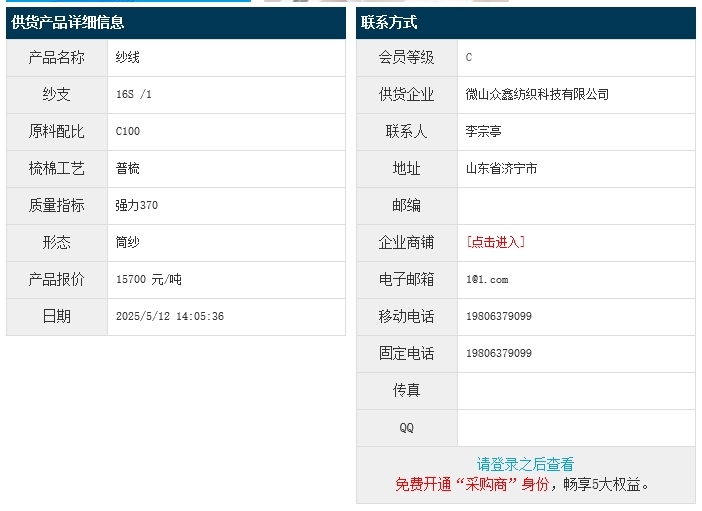 5月12日,微山眾鑫紡織科技有限公司普梳純棉紗C100 16S 強(qiáng)力370,報(bào)價(jià)為15700元/噸,實(shí)際成交價(jià)以協(xié)商為準(zhǔn)。[點(diǎn)擊查看詳情]