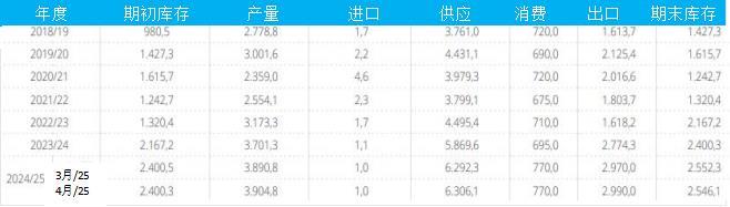 以下為巴西棉花供需平衡表(單位:千噸)