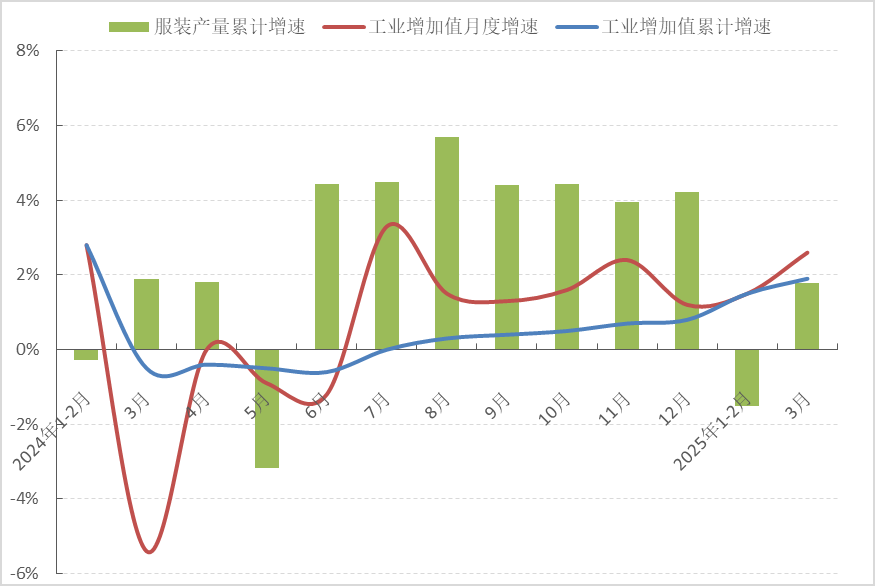 圖1 2025年1-3月服裝行業(yè)生產(chǎn)增速情況