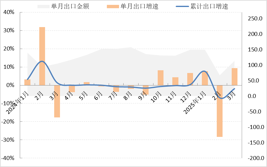 圖3 2025年1-3月我國(guó)服裝及衣著附件出口情況