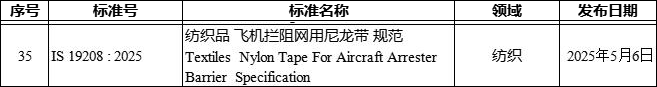 2025年4月25日至5月20日,印度標(biāo)準(zhǔn)局(BIS)累計(jì)發(fā)布國(guó)家標(biāo)準(zhǔn)35項(xiàng),涉及紡織等多個(gè)領(lǐng)域。詳見下表。