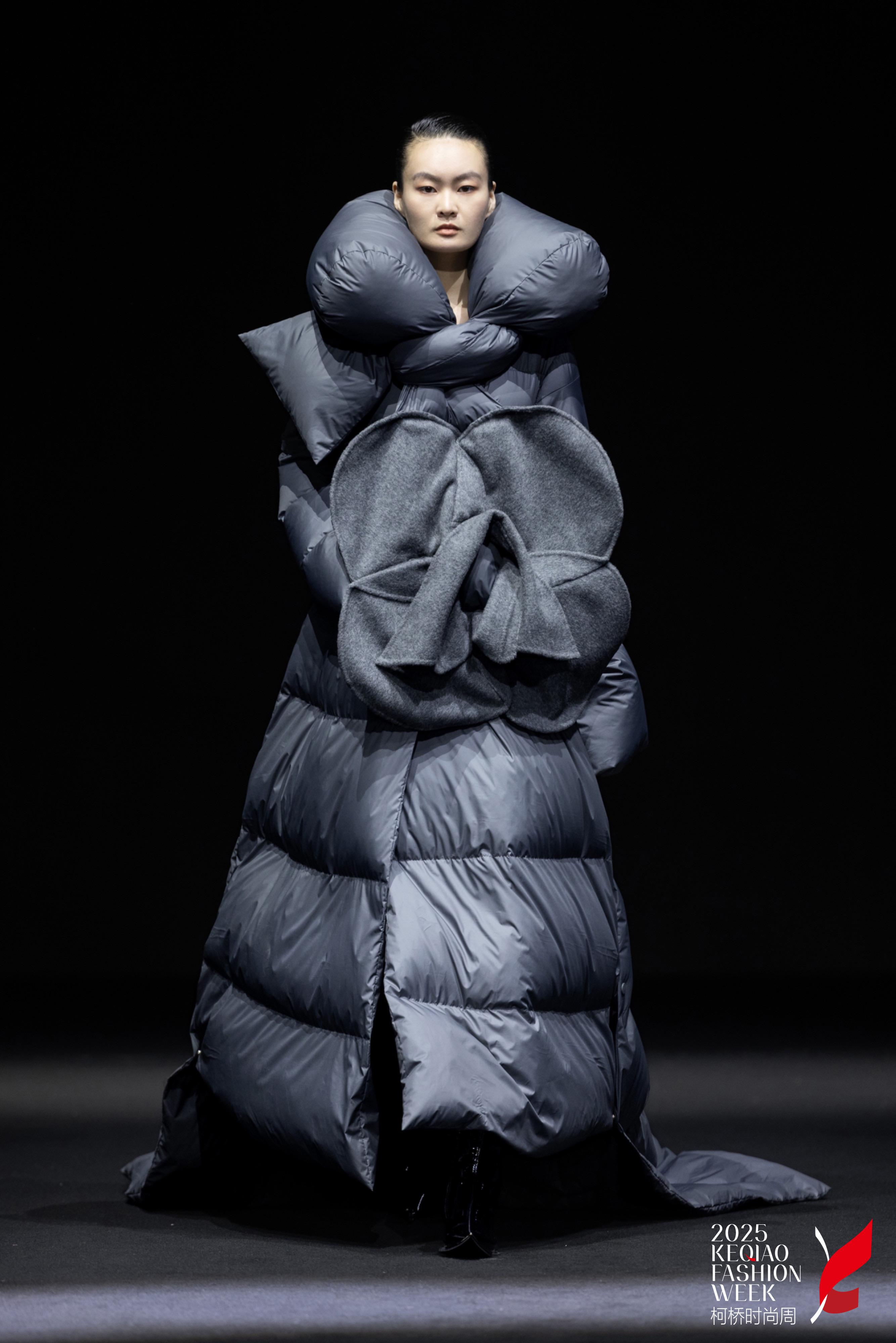 本季以“蝶蛹初生—羽化蛻變—生命綻放”為敘事脈絡(luò),將自然界的蝶變哲學(xué)與羽絨服功能性、藝術(shù)性融合。通過仿生蕾絲蝴蝶造型、雙面呢花卉拼接、羊毛與羽絨材質(zhì)碰撞,結(jié)合運(yùn)河滑雪運(yùn)動(dòng)基因、職場套裝與膨脹式戲劇化廓形,打造兼具浪漫詩意與未來科技感的冬日美學(xué)。