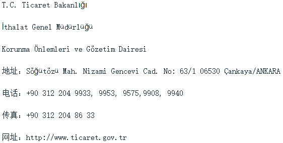 調(diào)查機(jī)關(guān)(土耳其貿(mào)易部)聯(lián)系方式: