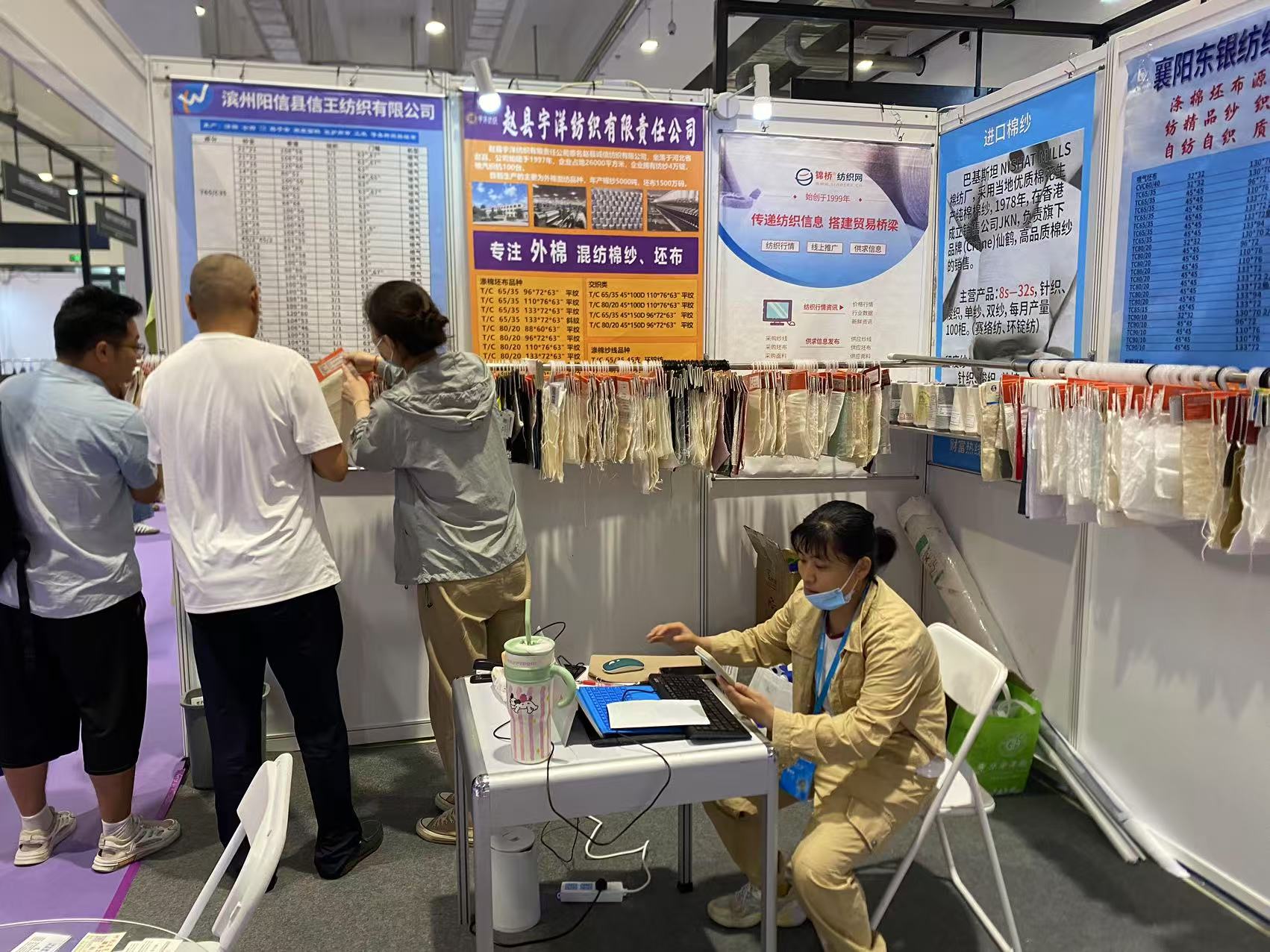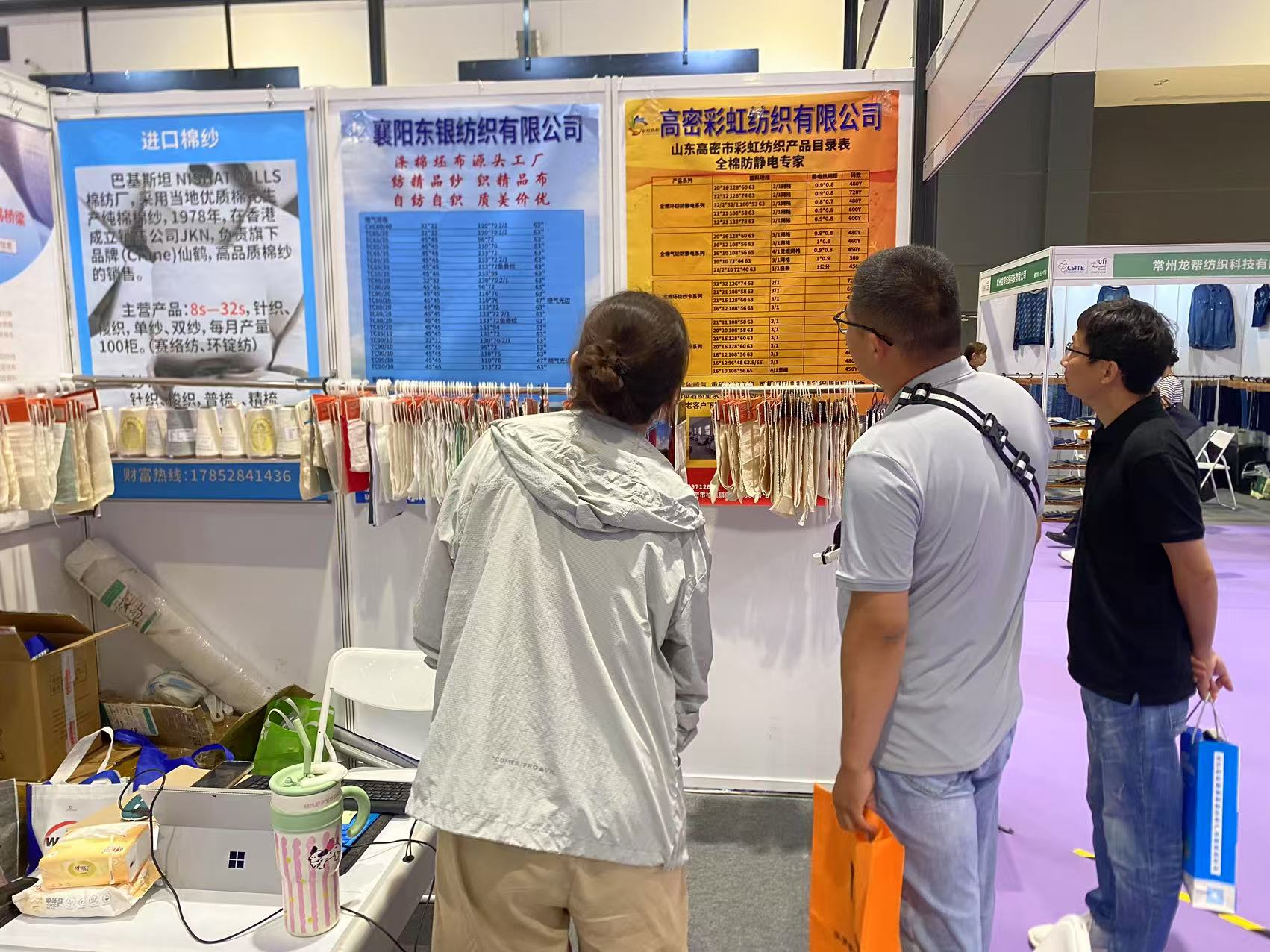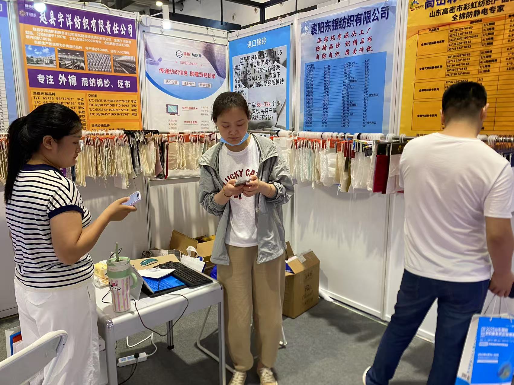 此次展會為濱州信王紡織、趙縣宇洋紡織、襄陽東銀紡織、高密彩虹紡織(排名不分先后)等等眾多會員企業(yè)現(xiàn)場代展樣品和產品目錄,到展位采購商或拿樣品或拍下照片留聯(lián)系方式。