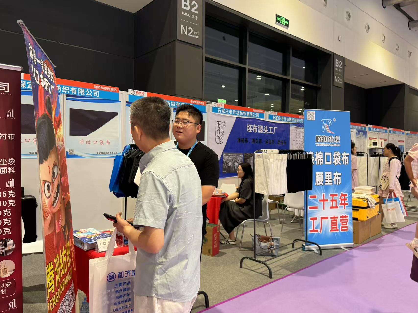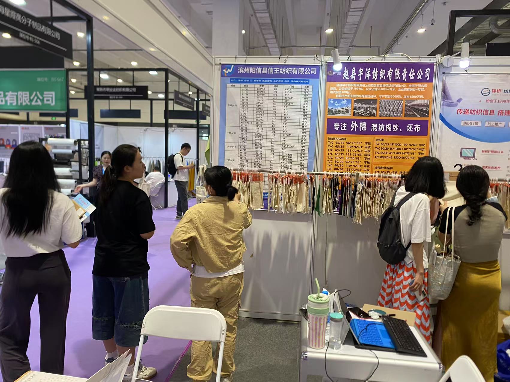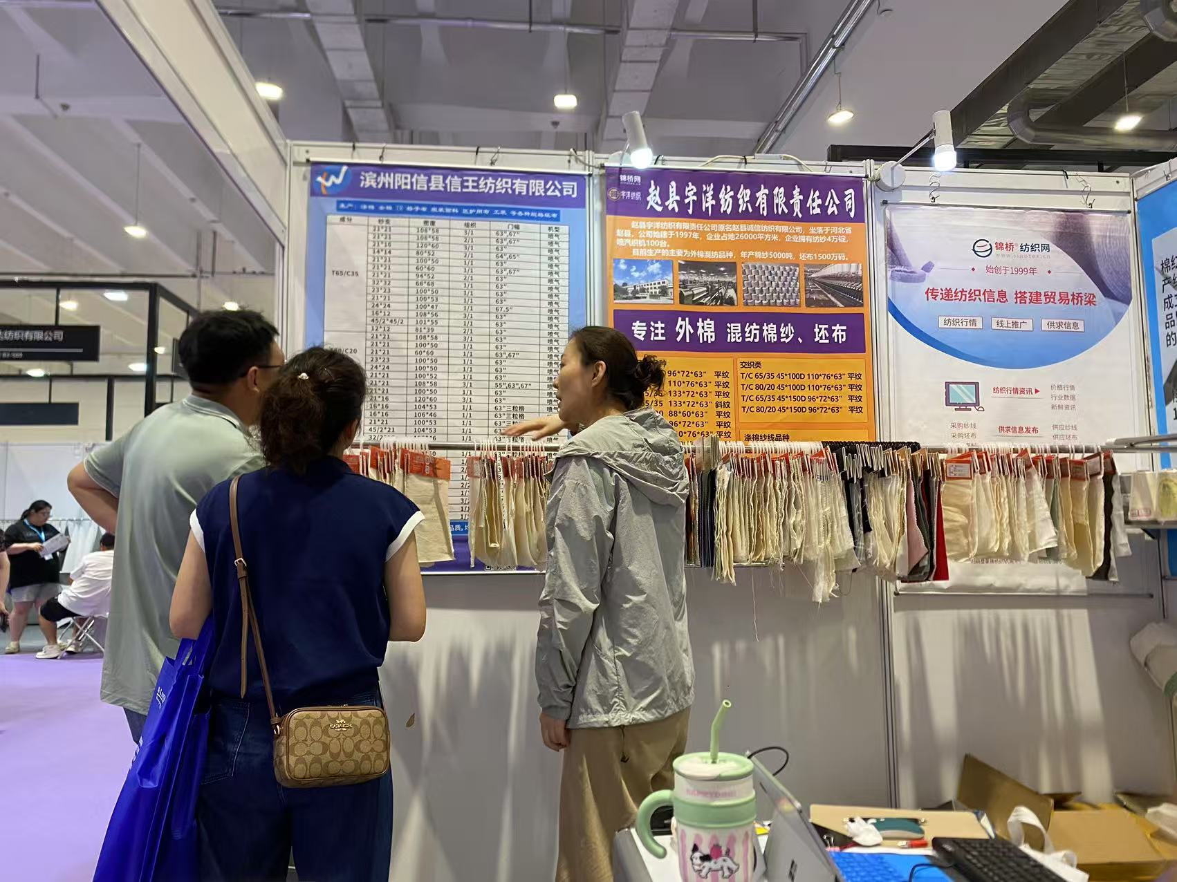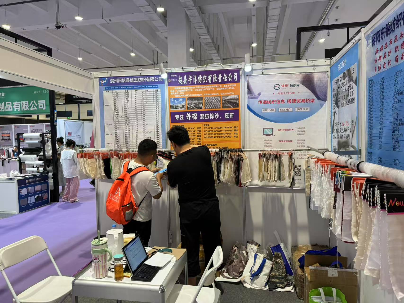 此次展會為濱州信王紡織、趙縣宇洋紡織、襄陽東銀紡織、高密彩虹紡織(排名不分先后)等等眾多會員企業(yè)現(xiàn)場代展樣品和產品目錄,到展位采購商或拿樣品或拍下照片留聯(lián)系方式。