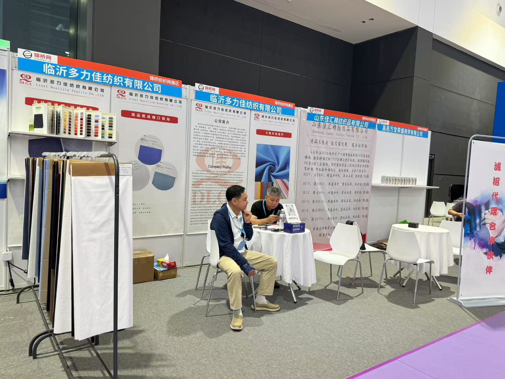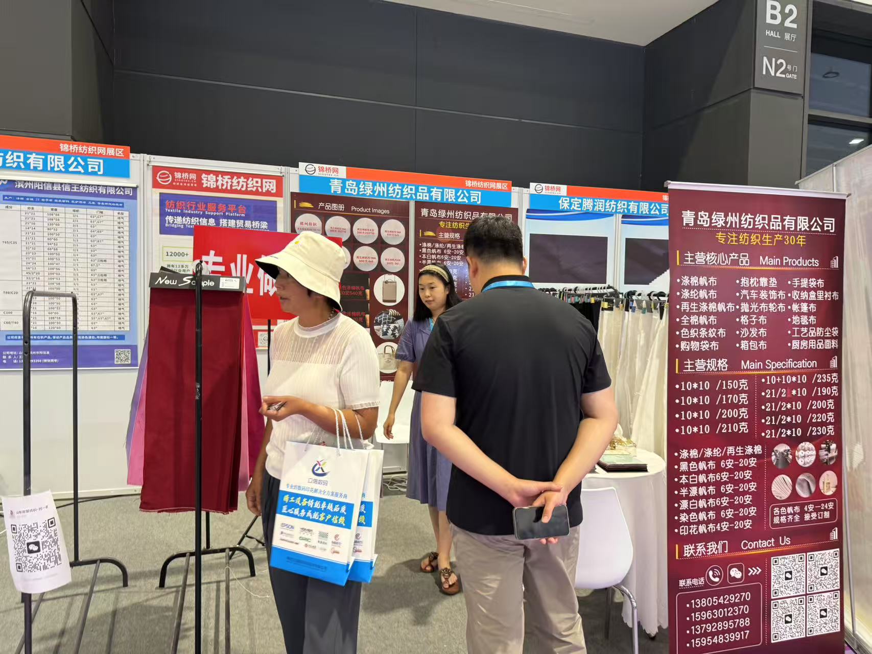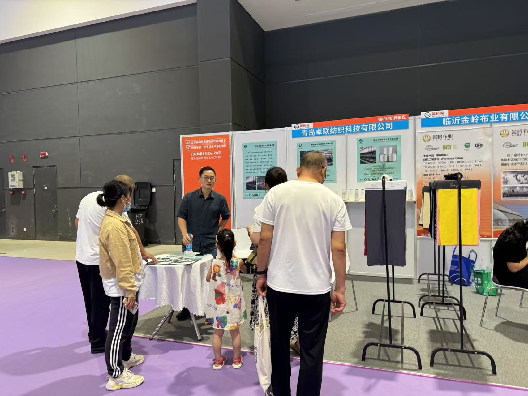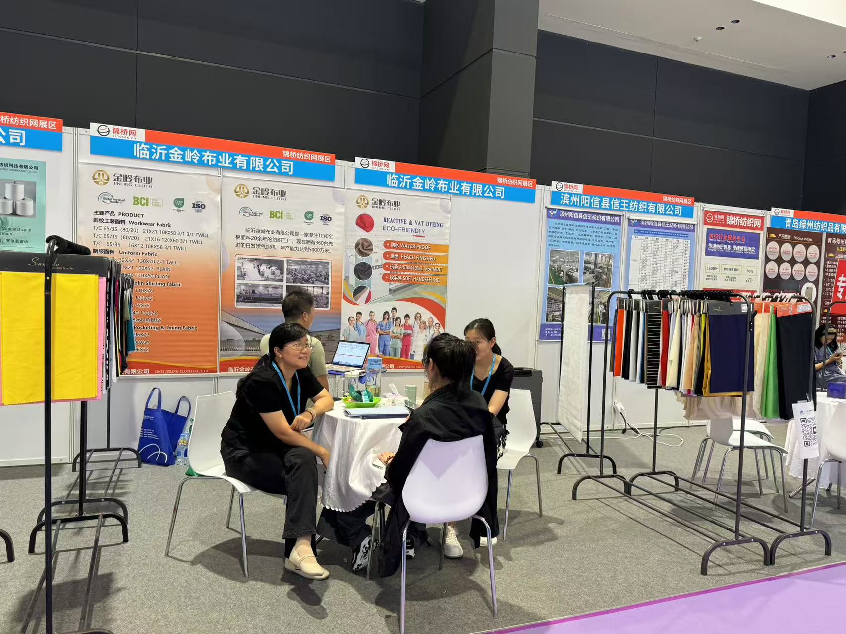 此次展會為會員客戶設立錦橋紡織網紗線坯布展區(qū),參展會員有青島卓聯(lián)紡織科技、臨沂金嶺布業(yè)、石家莊老作坊紡織、濱州信王紡織、青島綠州紡織品、保定騰潤紡織、滕州宏鷹紡織、臨沂多力佳紡織、昌邑萬寶榮盛商貿、山東佳匯棉紡織品(排名不分先后)。
