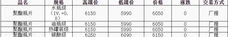 華東聚酯瓶片價(jià)格穩(wěn)至6050元/噸,原油小幅反彈,然原料表現(xiàn)一般,聚酯瓶片工廠報(bào)價(jià)預(yù)計(jì)持穩(wěn),重心僵持整理。6-7月貨源報(bào)盤5990-6150元/噸或期貨合約2508貼水10元/噸至升水100元/噸,遞盤5990-6040元/噸,下游買氣偏弱。