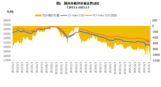 二、內(nèi)外棉紗月度均價(jià)下跌