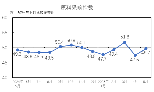 中國制造業(yè)景氣水平較上月改善。國家統(tǒng)計局服務(wù)業(yè)調(diào)查中心和中國物流與采購聯(lián)合會發(fā)布的2025年5月中國制造業(yè)采購經(jīng)理指數(shù)為49.5%,較上月上升0.5個百分點,景氣水平比上月改善。
