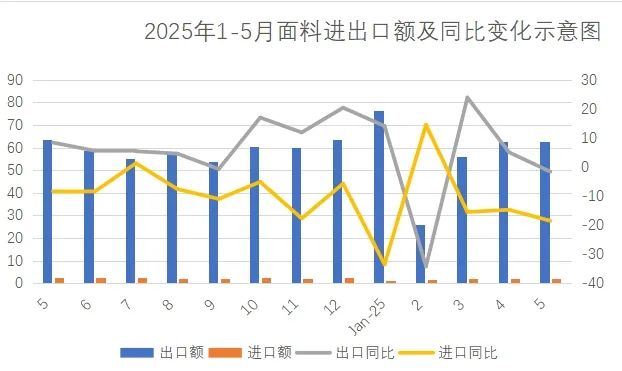 5月紗線面料出口由正轉(zhuǎn)負(fù),進(jìn)口大幅下降