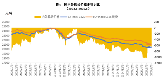 二、內(nèi)外棉紗月度均價下跌