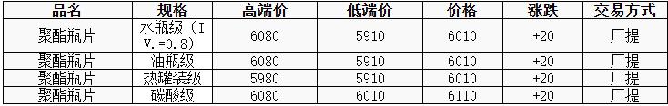 華東聚酯瓶片價格上漲20元至6010元/噸,昨日午間商品氣氛帶動,聚酯原料偏暖運行,支撐聚酯瓶片工廠報價多上漲10-50元/噸,重心上移。7-8月貨源報盤5990-6080元/噸,遞盤5930-6030元/噸。