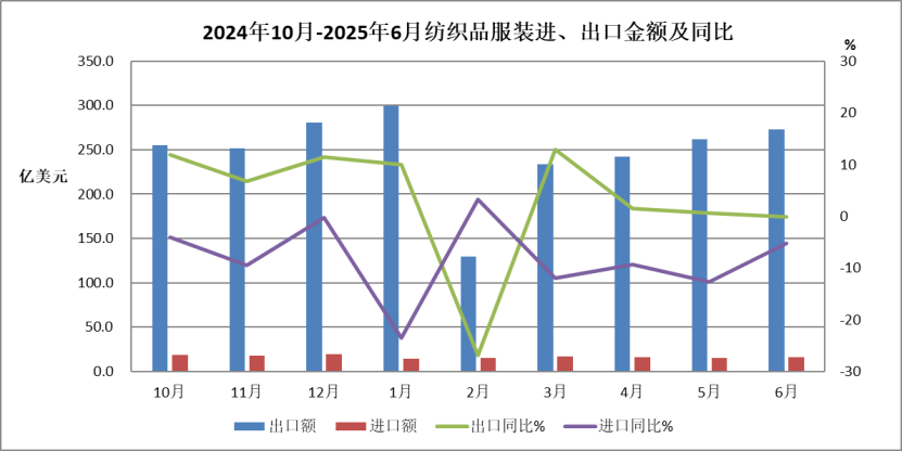 2025年1-6月紡織品服裝貿(mào)易呈現(xiàn)如下特點: