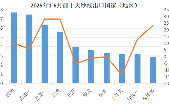 越南:1-6月我國(guó)對(duì)越南出口紗線7.7億美元,同比增長(zhǎng)10%。