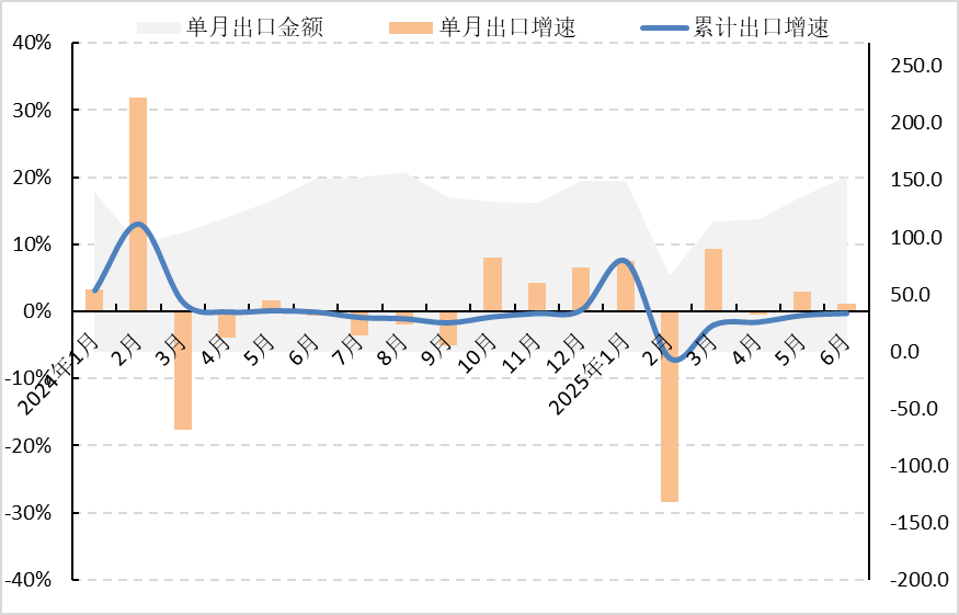 圖3 2025年1-6月我國服裝及衣著附件出口情況