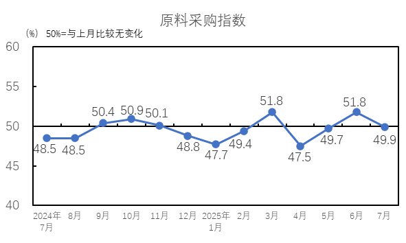 中國制造業(yè)采購經(jīng)理指數(shù)有所回落。國家統(tǒng)計局服務(wù)業(yè)調(diào)查中心和中國物流與采購聯(lián)合會發(fā)布的2025年7月中國制造業(yè)采購經(jīng)理指數(shù)為49.3%,較上月下降0.4個百分點(diǎn)。7月,受制造業(yè)進(jìn)入傳統(tǒng)生產(chǎn)淡季,部分地區(qū)高溫、暴雨洪澇災(zāi)害等因素影響,制造業(yè)景氣水平較上月回落。