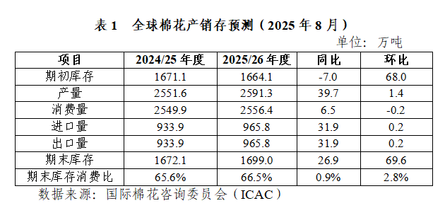 1.2025/26年度全球棉花供需形勢維持寬松