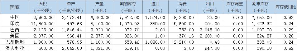 以下為主要生產(chǎn)國棉花供需情況預(yù)估: