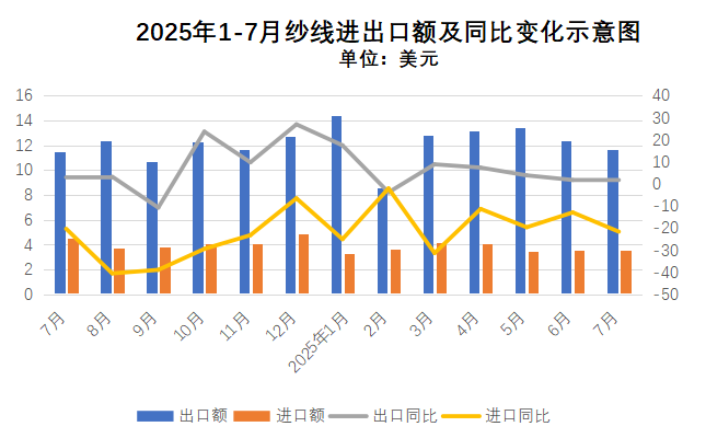 7月紗線面料出口止跌回升,進(jìn)口持續(xù)下降