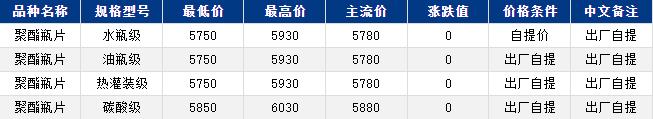 華東聚酯瓶片5780元/噸,漲跌值0元/噸,原料下跌,聚酯瓶片工廠報價穩(wěn)定,市場重心僵持。10月貨源報盤5750-5930,遞盤盤5680-5770;或9-10月貨源期貨合約2511+10至30;11月貨源2511合約平水,臨近國慶假期,下游及貿(mào)易商補貨心態(tài)不佳,商談氛圍清淡。