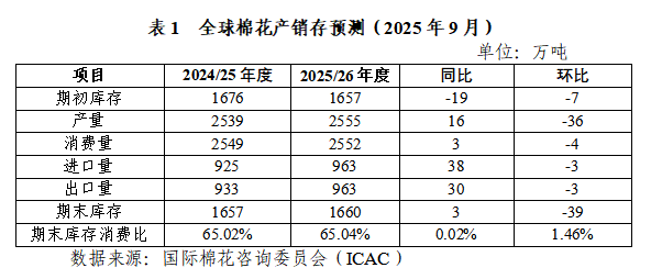 1.2025/26年度全球棉花供需關(guān)系由相對寬松轉(zhuǎn)向基本平衡