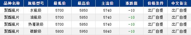 華東聚酯瓶片收于5740元/噸,下跌10元/噸,原油較節(jié)前下滑,原料支撐不足,聚酯瓶片工廠報價多下調(diào)50元/噸,市場重心弱勢下調(diào)。10-11月貨源報盤5700-5850,局部略低5680略高5900;或期貨合約2511貼水10至升水20-60,遞盤5700-5780或期貨合約2511貼水20,節(jié)后第1個工作日,業(yè)內(nèi)觀望情緒濃厚,市場安靜。