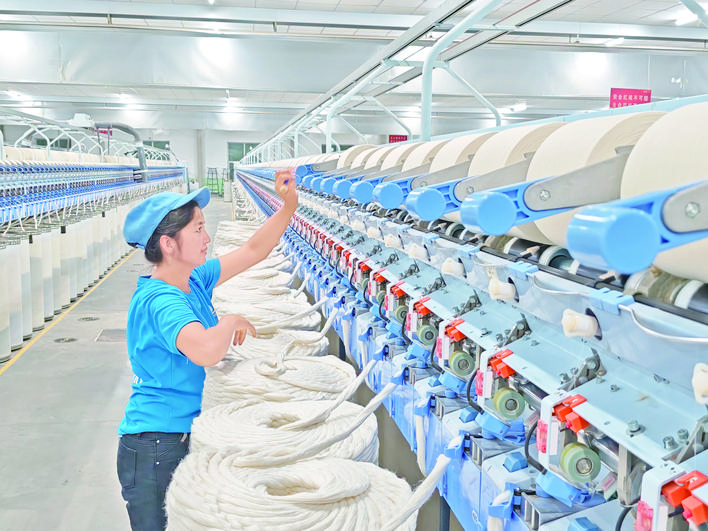 10月17日,工人在位于阿瓦提縣阿瓦提鎮(zhèn)庫木巴格社區(qū)的某紡織廠車間作業(yè)。近期以來,阿瓦提縣紡織廠開足馬力趕訂單,及時供應(yīng)市場需求。