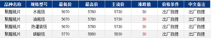 華東聚酯瓶片收于5730元/噸,漲跌值30元/噸,原油上漲疊加MEG提振,聚酯瓶片重心上揚(yáng)。11-12月貨源報(bào)盤(pán)5670-5780元/噸或期貨合約2601升水30-80,局部略低5620元/噸,遞盤(pán)5670-5730元/噸。下游、貿(mào)易商觀望情緒濃厚,實(shí)單遞盤(pán)零星。